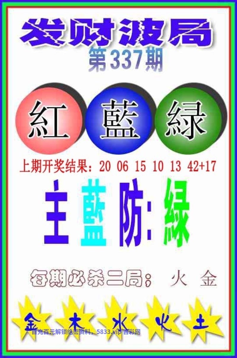 | 338期『发财波局』开發00 精解特肖:猴兔蛇龙牛鼠 必中二波:主蓝防红 绝杀二局:土木 |