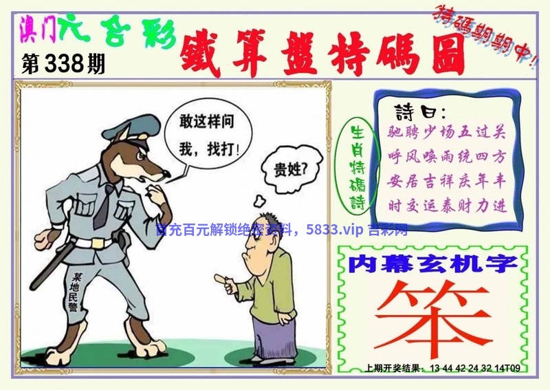 | 335期『发财波局』开狗44 精解特肖:鼠龙鸡兔狗马 必中二波:主红防绿 绝杀二局:木金 |
